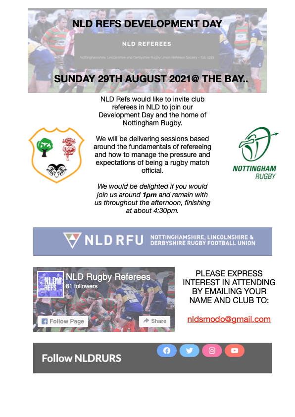All interested club referees should email nldsmodo@gmail.com to express their interest in joining us on Sunday 29th August 2021.